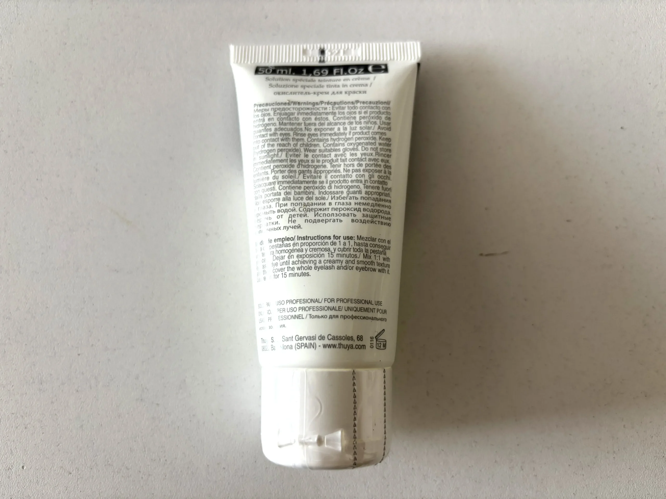 Mezclar este producto con el tinte en proporción 1 a 1 hasta conseguir una textura homogénea y cremosa, y cubrir toda la pestaña y/o ceja. Mejar en Exposición 15 minutos.